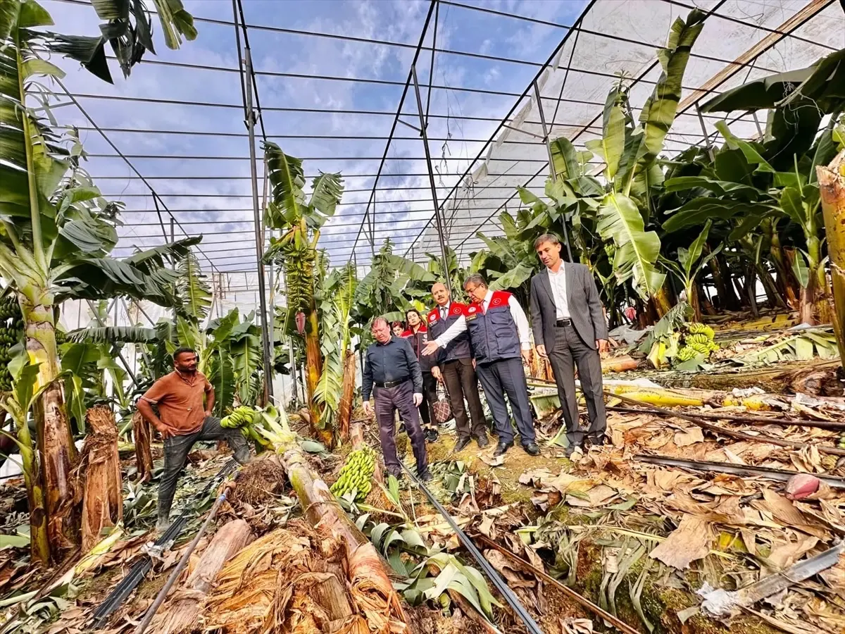 Mersin Tarım Müdürü Karadağ, Bozyazı’daki hortum zararını tespit için seraları inceledi.