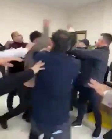 Şanlıurfa/Ceylanpınar ilçesinde belediye binasında yaşanan kavga cep telefonu kamerasına yansıdı. Bahçelievler Mahallesi’nde bulunan Ceylanpınar Belediyesi binasında, aralarında belediye personeli ve müdürlerin de yer aldığı iki grup arasında henüz bilinmeyen bir nedenle tartışma çıktı.