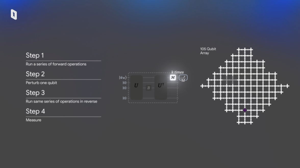 Bir kuantum algoritması çalıştırılırken, kullanıcı bu süperpozisyon ve enterferans dalgalarının iç içe geçtiği dev bir olasılık uzayında manipülasyon yapıyor. Google’ın Quantum Echoes yaklaşımı, OTOC olarak bilinen bir algoritma türü. Bu algoritma, art arda gerçekleştirilen kuantum işlemlerinden sonra qubit’in durumunu tespit ediyor. Manyetizasyon, akım, yoğunluk ve hız gibi değişkenlerdeki kıpırdanmaları ölçerek kuantum sistemlerinin kaos seviyelerini belirliyor.
